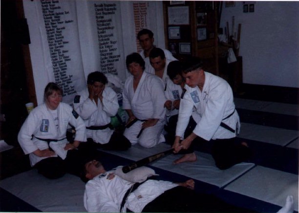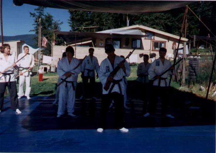 Bokken Form Dan Baca, Black Belt, leads the class in Bokken Katas.