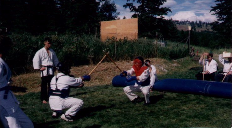 Kendo Travis teaches a class in Kendo.