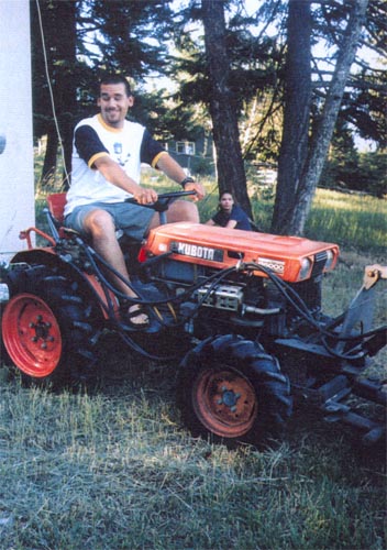 Dan on tractor Dan B. on the tractor moving the showers into position.