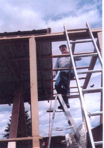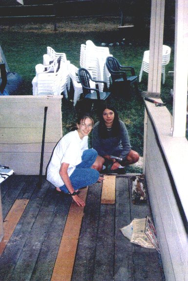 Working on deck Jesse and Chelle replacing rotted deck planks.