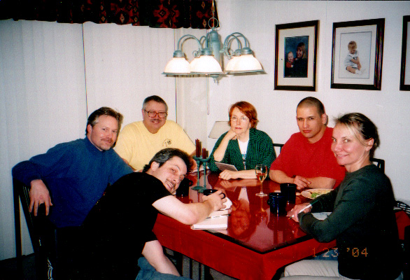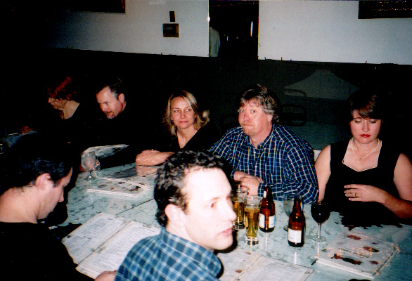 Saturday night dinner at Thai restaurant (L to R) (Front) David, Curtis, (Back) Lora, Todd, Denise, Chris, Debborah (120 KB) |